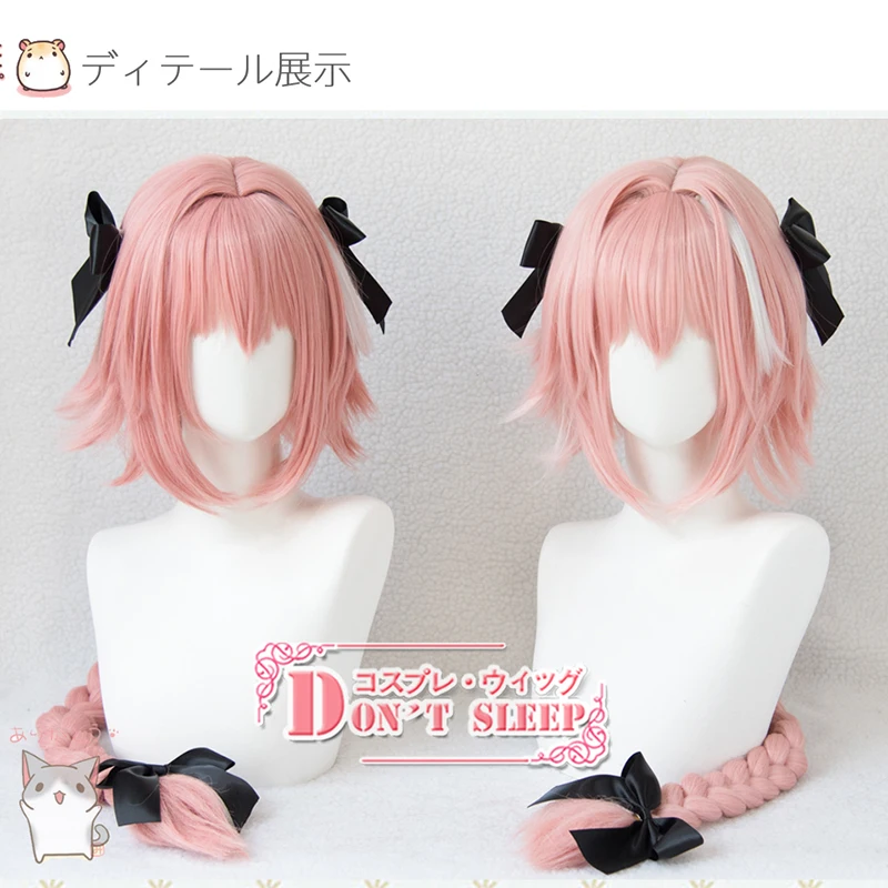 (0% Off) Купить Игра Fate Apocryph Astolfo Косплей парики 80 см длинные Розовые Смешанные термостойкие синтетические волосы Костюм парик Цена Дешево