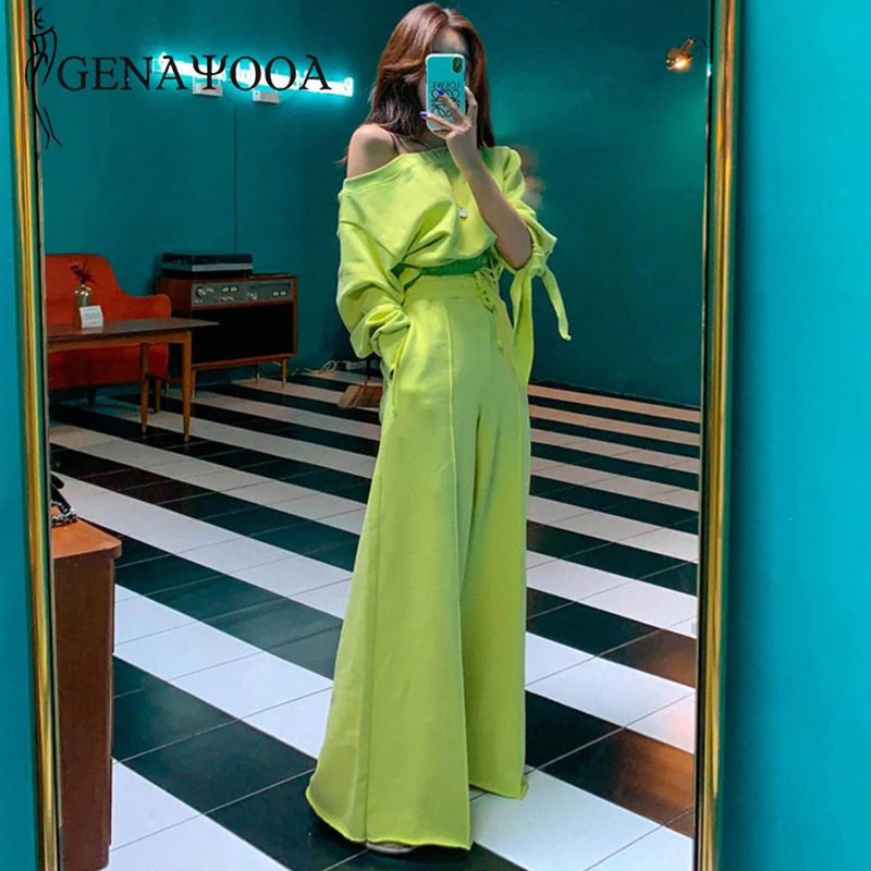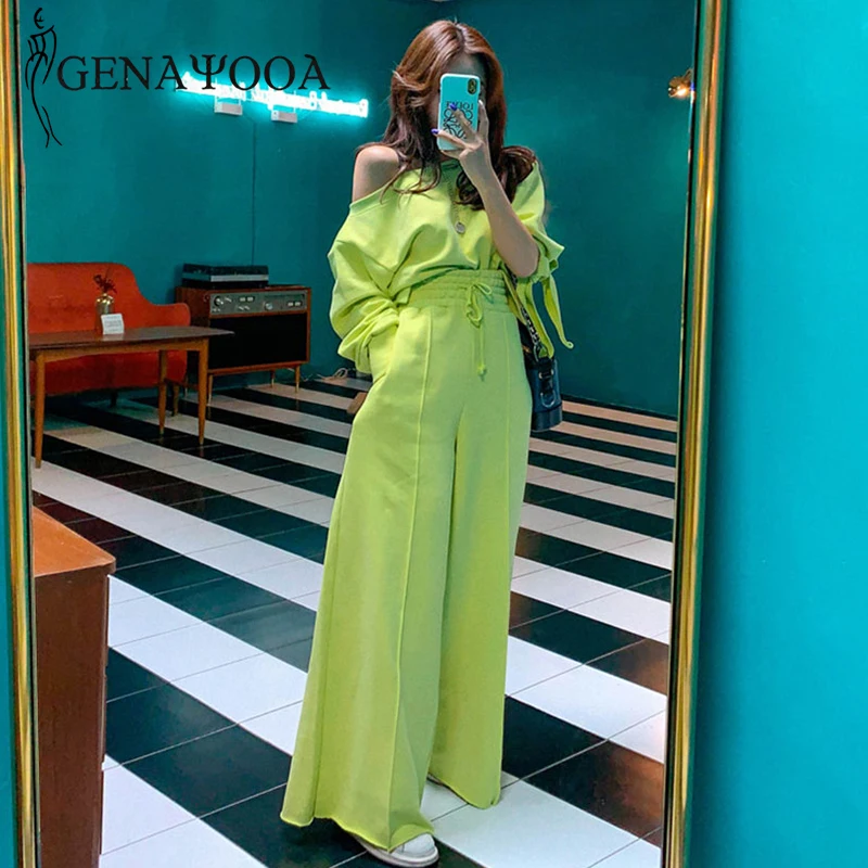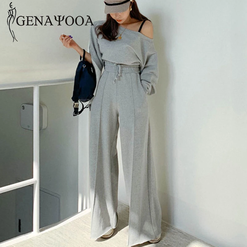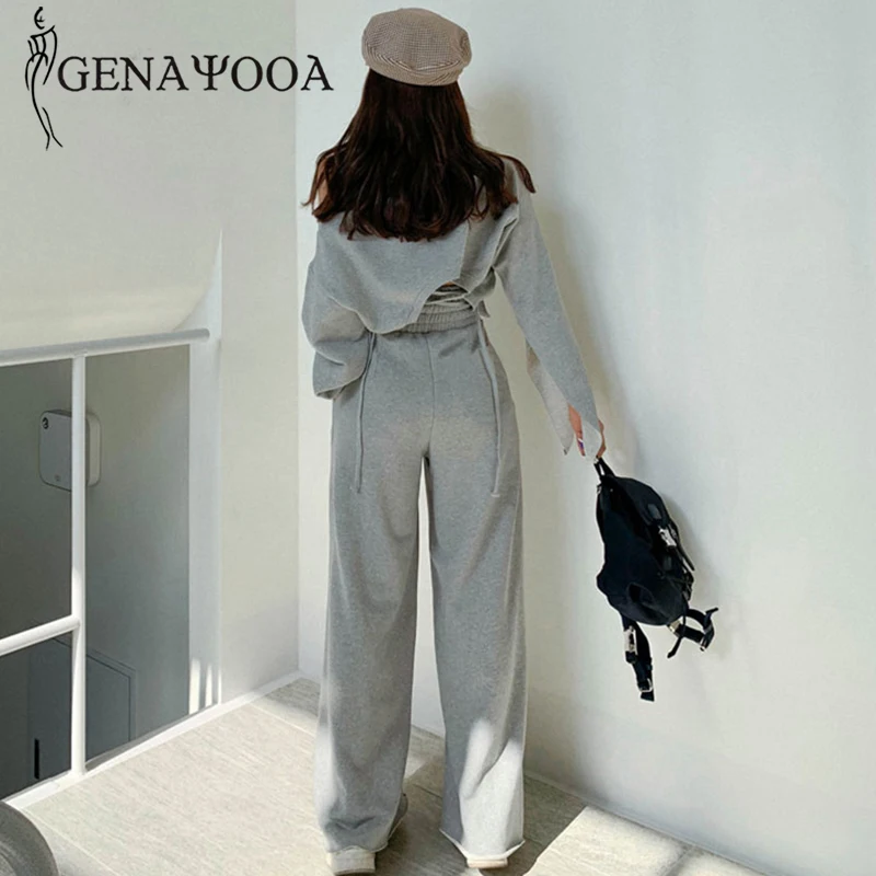 Special Offer Женский спортивный костюм genayoa, повседневный Весенний костюм из 2 предметов, комплект из двух предметов в Корейском стиле, топ и штаны, топы с... Discount 58% Today!