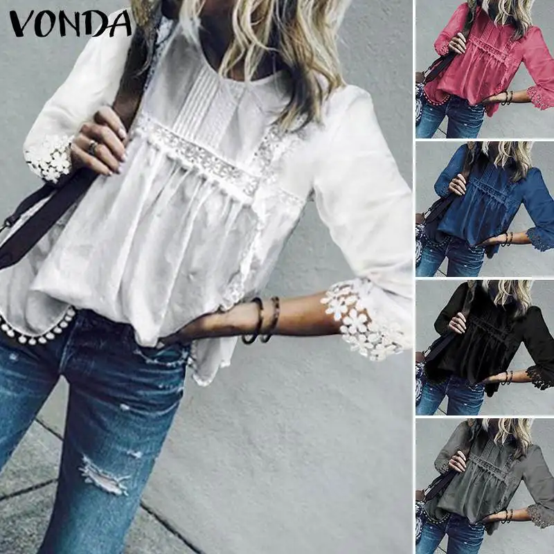 (47% Off) Купить Женские топы и блузки VONDA, повседневная однотонная блузка в богемном стиле с рукавом 3 4, большие размеры, лето 2019 Продажа Дешево