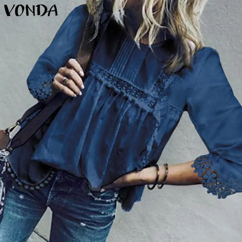 Special Offer Женские топы и блузки VONDA, повседневная однотонная блузка в богемном стиле с рукавом 3 4, большие размеры, лето 2019 Discount 47% Today!