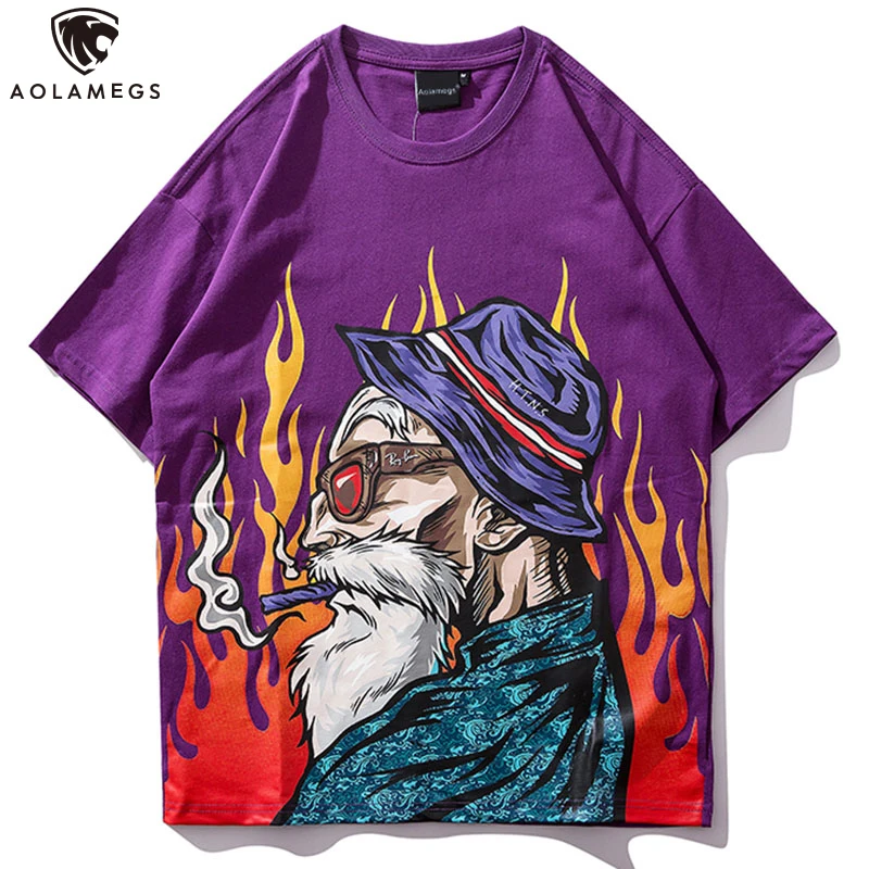 (42% Off) Купить Aolamegs Мужская футболка с японским принтом, круглым вырезом, хлопковая модная в стиле хип хоп для пары, уличная од... Продажа Дешево