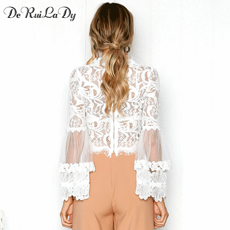 Special Offer Женская кружевная блузка DeRuiLaDy, белая блузка с расклешенными рукавами, Повседневная Блузка с длинным рукавом на лето Discount 51% Today!