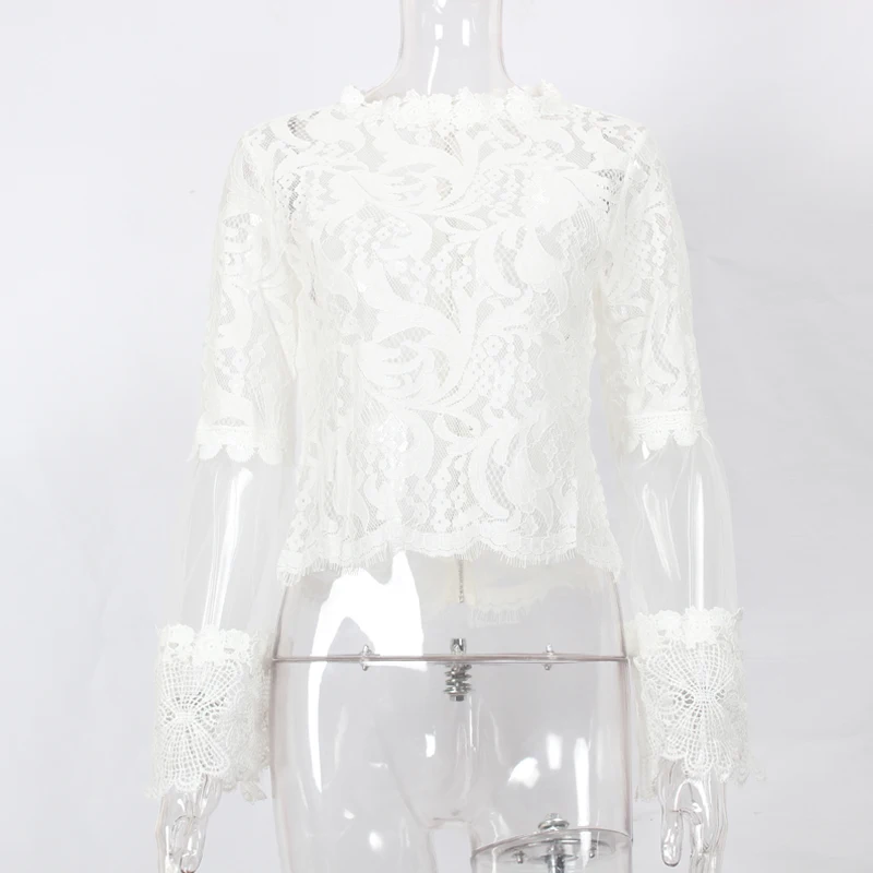 Product Name: Женская кружевная блузка DeRuiLaDy, белая блузка с расклешенными рукавами, Повседневная Блузка с длинным рукавом на лето
