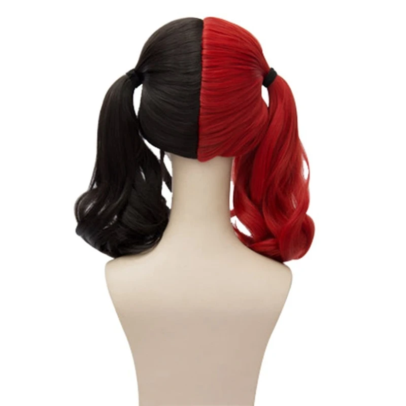 Product Name: Harleen Quinzel Харли Куинн косплей парик 45 см короткие волосы красный черный смешанные синтетические волосы парики