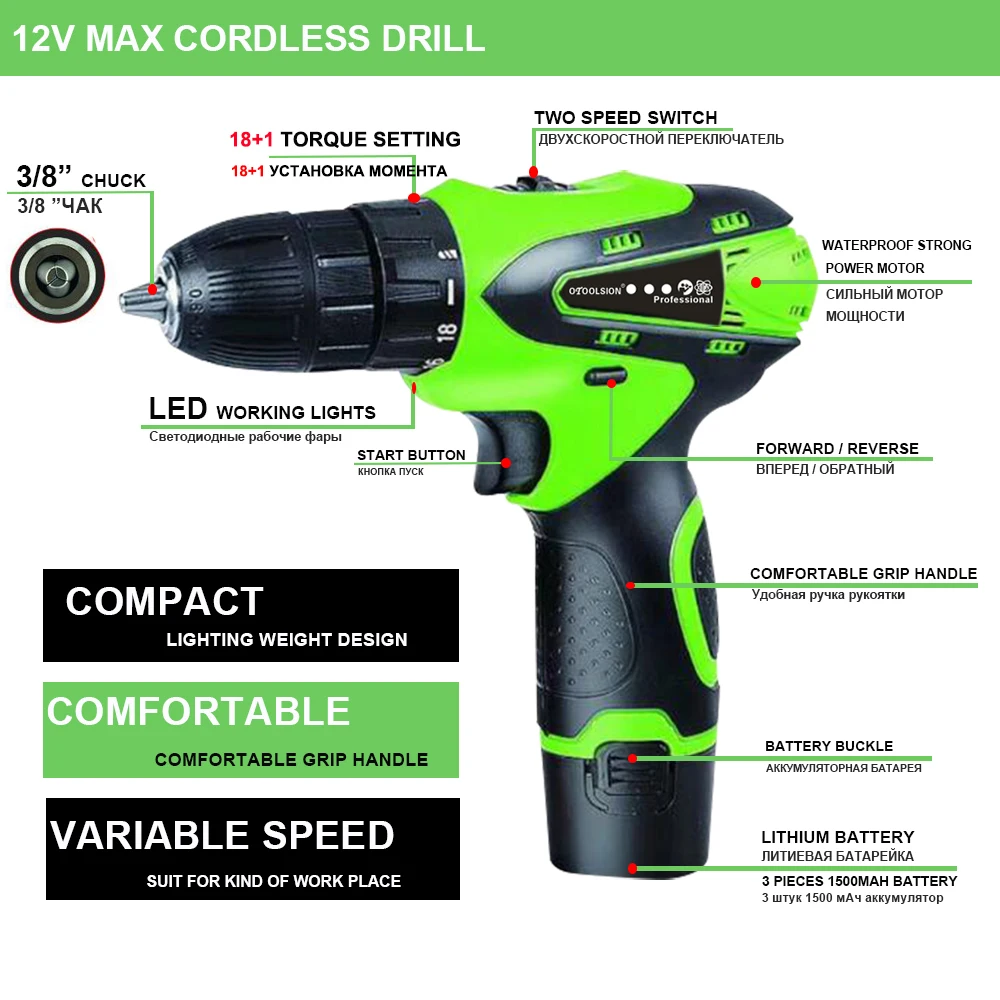 Product Name: 12V 1500 мА ч, маленький дрель Мощность Инструменты Мини электрическая дрель зарядное сверло отвертки с 2 батарейки типа «сделай сам» для дома